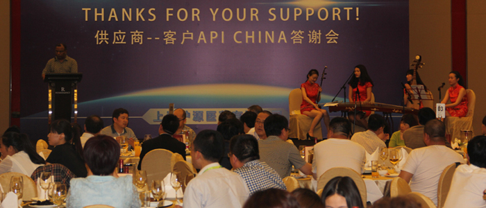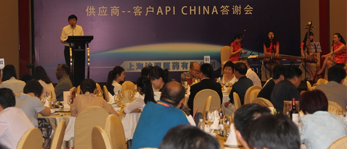 值第74届API在上海举办之际,沪源医药于5月15日晚在上海长宁区龙之梦-万丽大酒店10楼宴会厅隆重举办了“感恩有您 成就沪源”为主题的2015供应商-客户交流会。